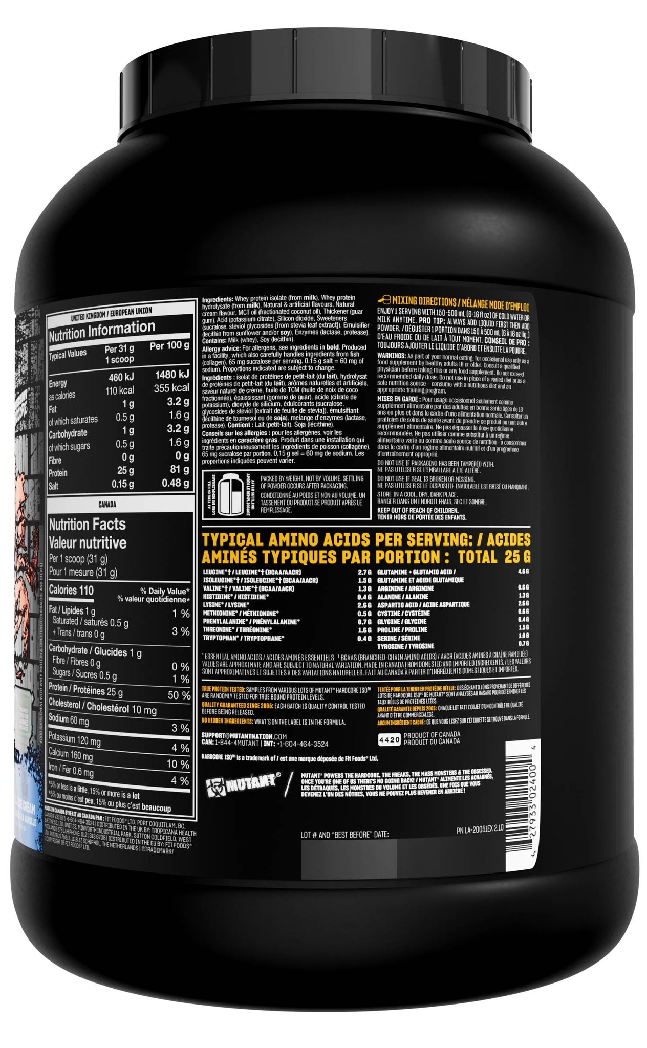 MUTANT® Hardcore ISO is a gourmet whey protein isolate and hydrolysate formula designed for rapid absorption and muscle recovery. Each serving delivers 25 g of ultra-fast digesting protein engineered to fuel lean muscle growth, strength, and performance. With a creamy texture and indulgent flavors, it’s the ultimate protein choice for serious athletes committed to a lean, controlled diet.